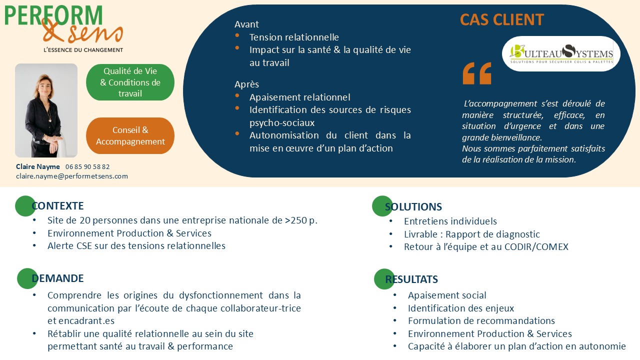 - Rétablir une qualité relationnelle au sein du site permettant santé au travail & performance