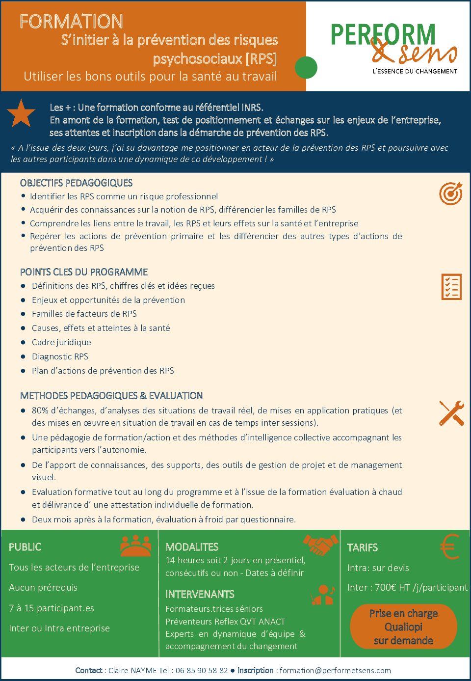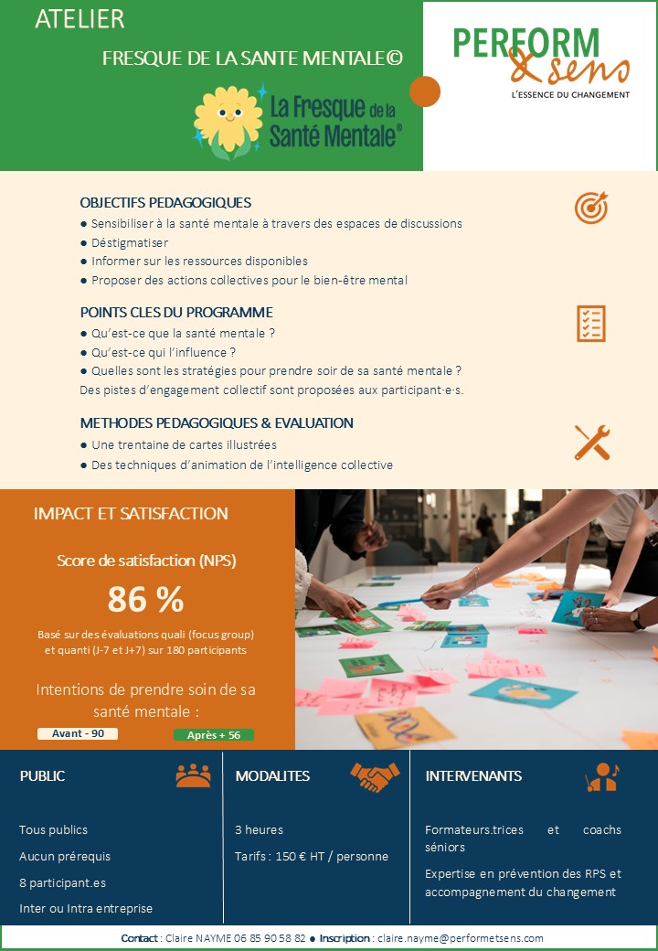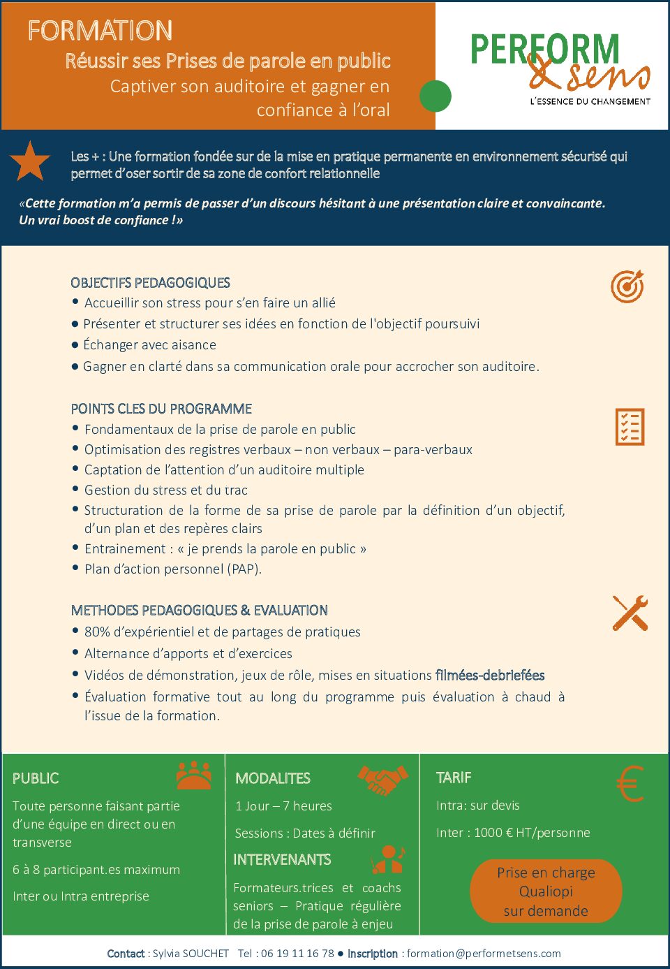- Nos formations catalogue permettent un accès immédiat à une base de données de thématiques choisies et activables rapidement, grâce à l’expertise de l’équipe de formateurs Perform & Sens